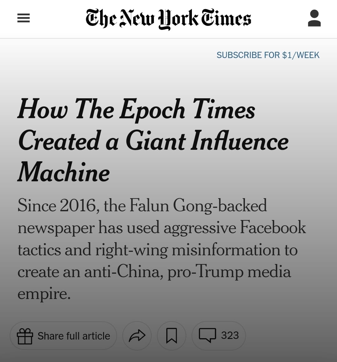 Sometimes the establishment mouthpieces get it right when it means trashing right wingers. The same thing happened when the New York Times blew the top off of the Epoch Times for being a front of the rabidly dissident anti-China religious group, Falun Gong. The reason? They were also pro Trump.