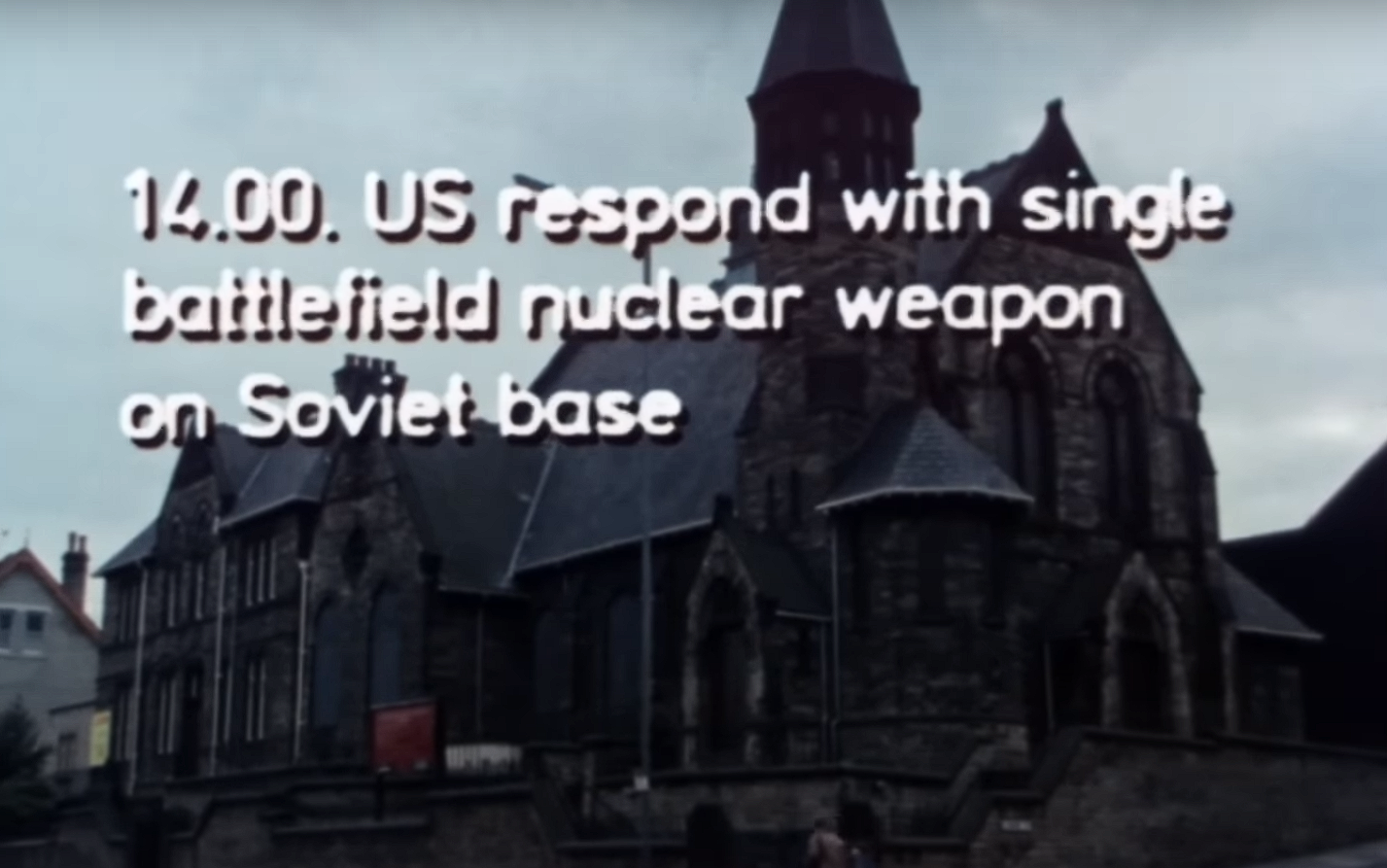 Much like real life, the film's geopolitical escalation takes place in the background of daily life via news broadcasts and headlines. The citizens of Sheffield, UK, where the film takes place, at first try to ignore the crisis, but begin to panic when the Soviets break an American ultimatum—reminiscent of the UK's own declaration of war against Germany in WWII.