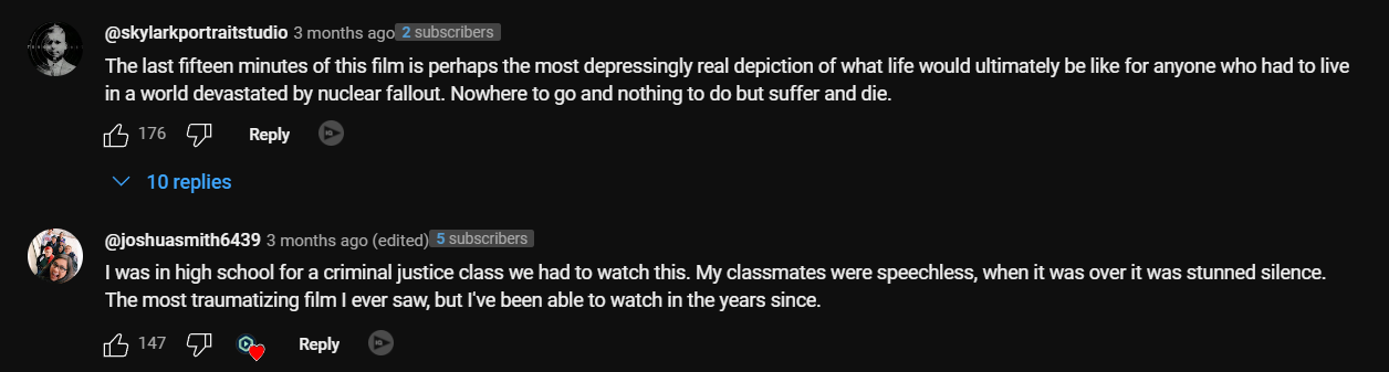 Ultimately, the film is a disturbing reminder of just how bad things could get. The comments are full of Brits recounting how they were made to watch it in school—perhaps we should all be watching it? What do you think?